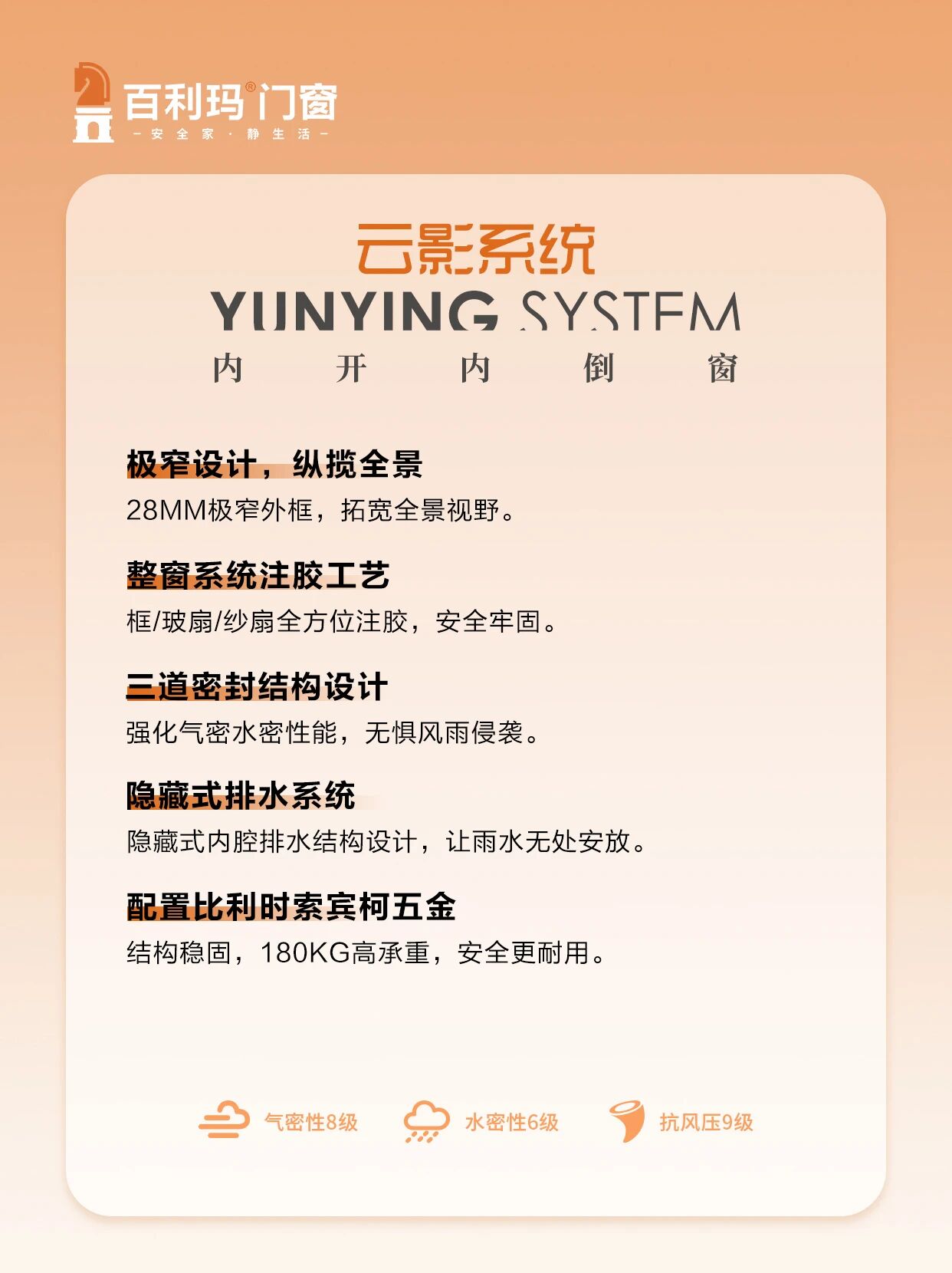 气密性 8 级 + 水密性 6 级 + 抗风压 9 级,