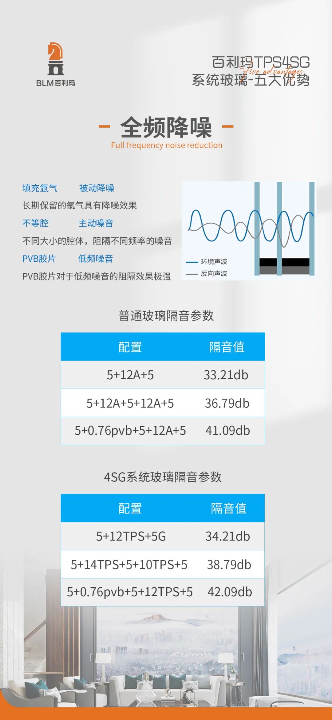 玻璃:可选TPS/4SG中空夹胶玻璃(6+12A+6+0.76PVB+6),中低频噪音(如交通、施工声)衰减率提升35%;