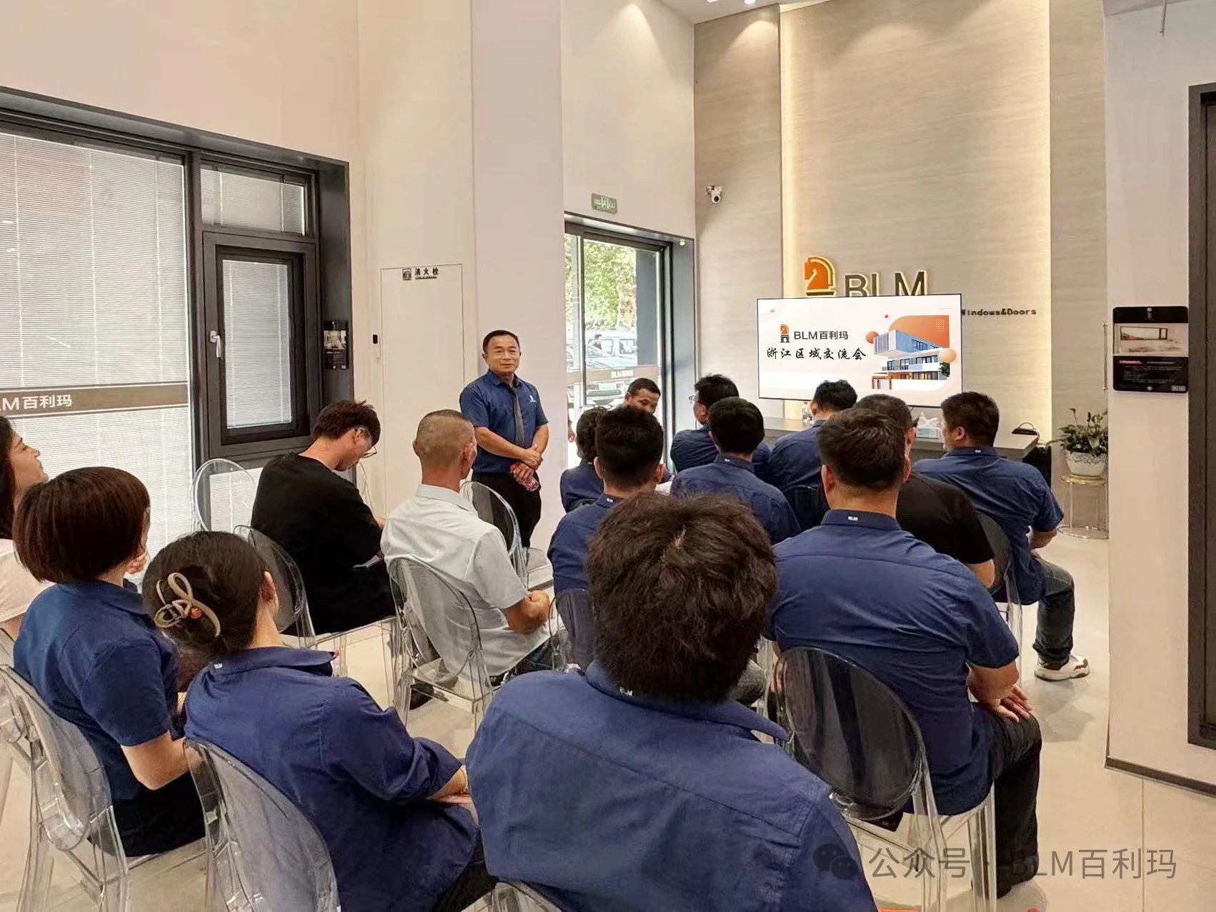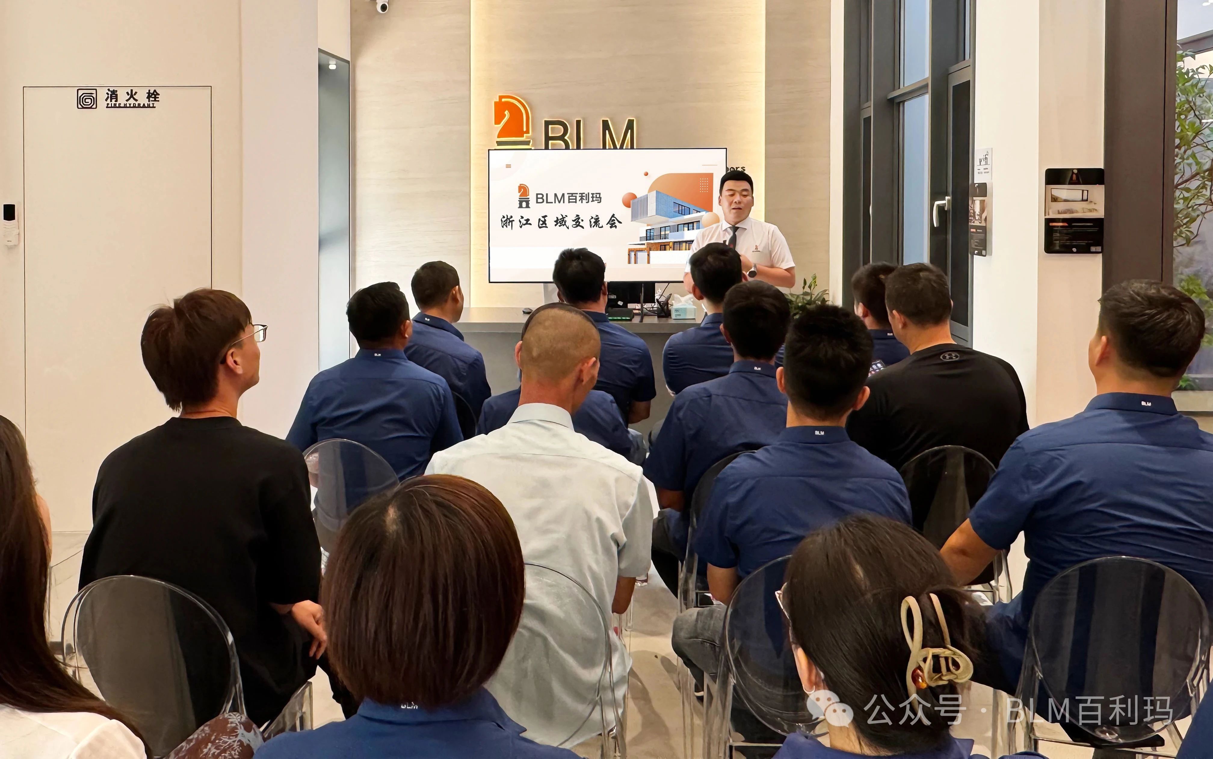 百利玛门窗区域经理陈佳浩现场总结上半年浙江市场成绩,并针对区域特性提出优化方案。他重点部署下半年工作:一是深化渠道下沉,拓展中高端市场;二是升级门店形象,打造沉浸式消费场景;三是强化异业联盟,提升客单转化率。同时讲解新品优势,为经销商注入市场信心。