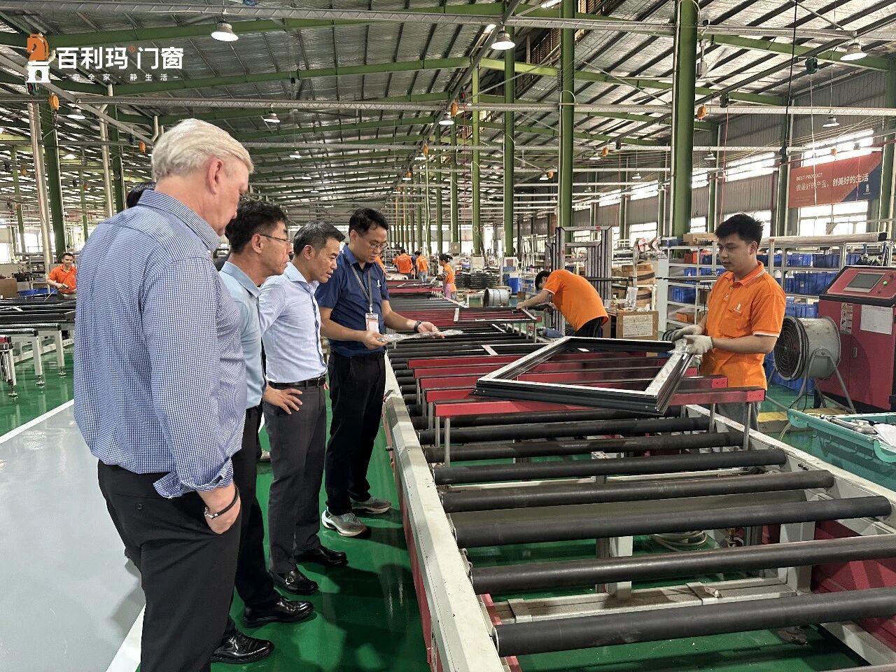 走进标准化生产车间,Martin Mertens总裁一行驻足各关键生产环节,详细了解百利玛精密制造的全流程,从多腔体断桥型材制造、复合密封系统装配,到注胶角码连接工艺,均给予细致关注,并对品牌先进的数控加工技术与全链条品质管控体系给予高度赞赏。