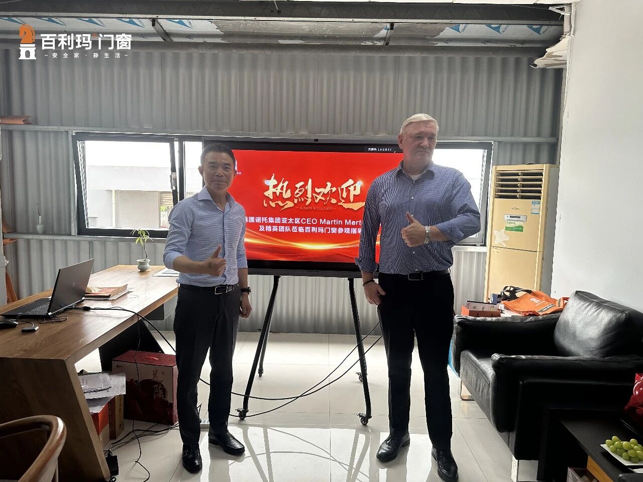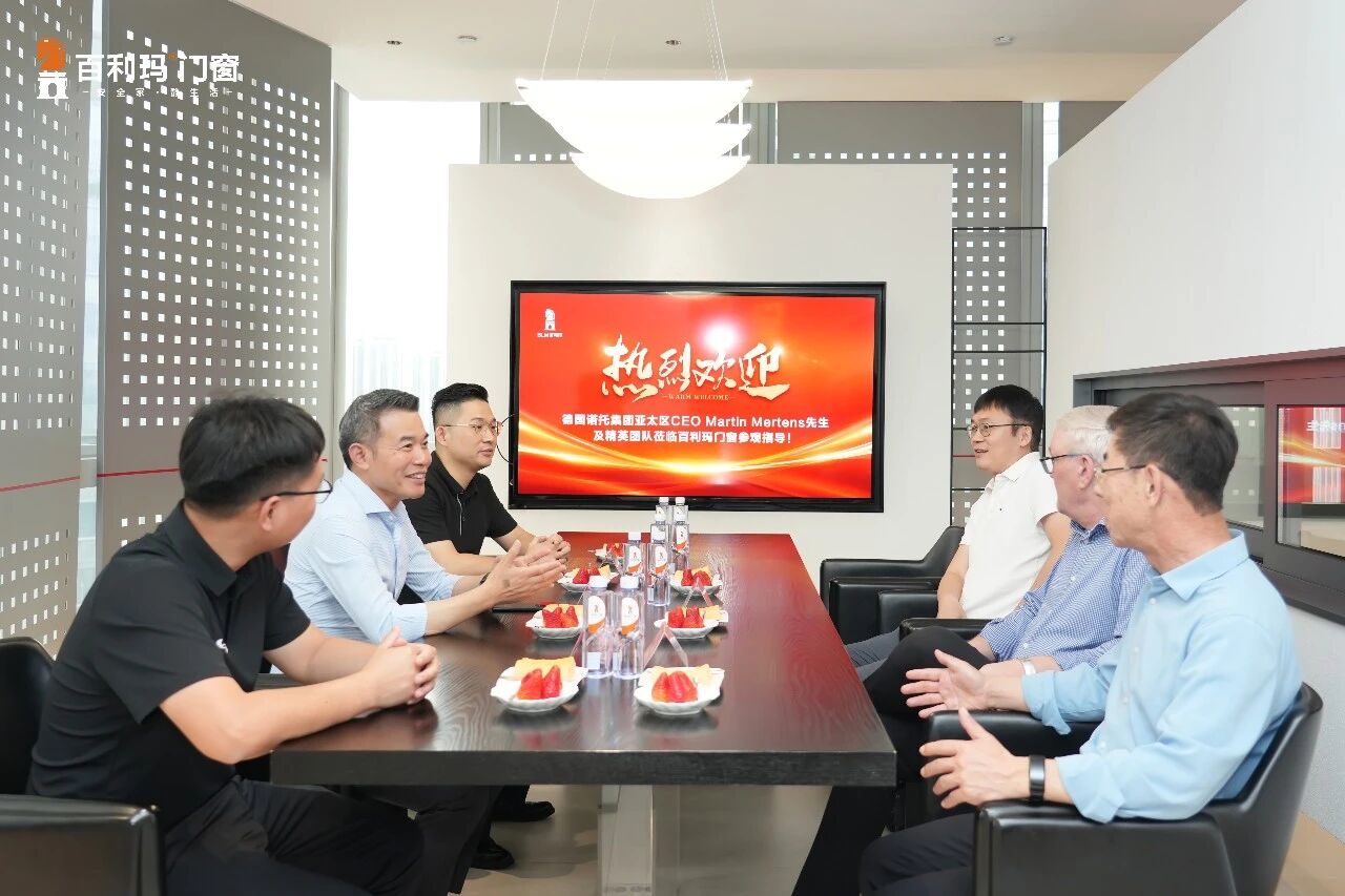 4月14日,一场跨越国界的行业对话在百利玛门窗总部温情启幕。全球门窗五金系统领军企业——德国诺托集团(Roto)亚太区总裁Martin Mertens、中国区总经理杨建辉、华南区销售总监钟可成一行专程到访百利玛门窗总部开展深度参观交流,百利玛门窗董事长黄维寿、营销副总经理刘增钿热情接待。双方在亲切会谈中凝聚共识,在深度对接中夯实合作根基,为行业协同发展注入全新动能。