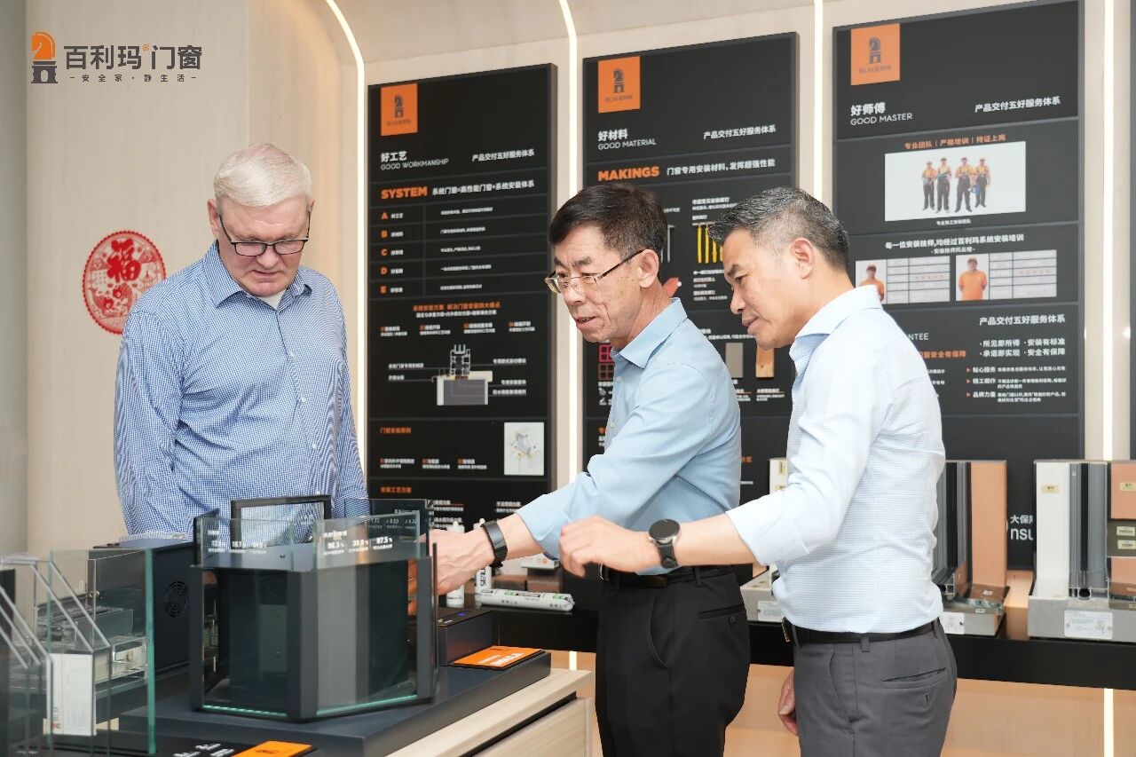 在百利玛核心管理团队的全程陪同下,德国诺托一行先后走进企业现代标准化生产车间与高端产品体验展厅,沉浸式感受百利玛在品质管控与产品创新上的硬核实力,近距离触摸中国高端门窗行业的发展脉搏。