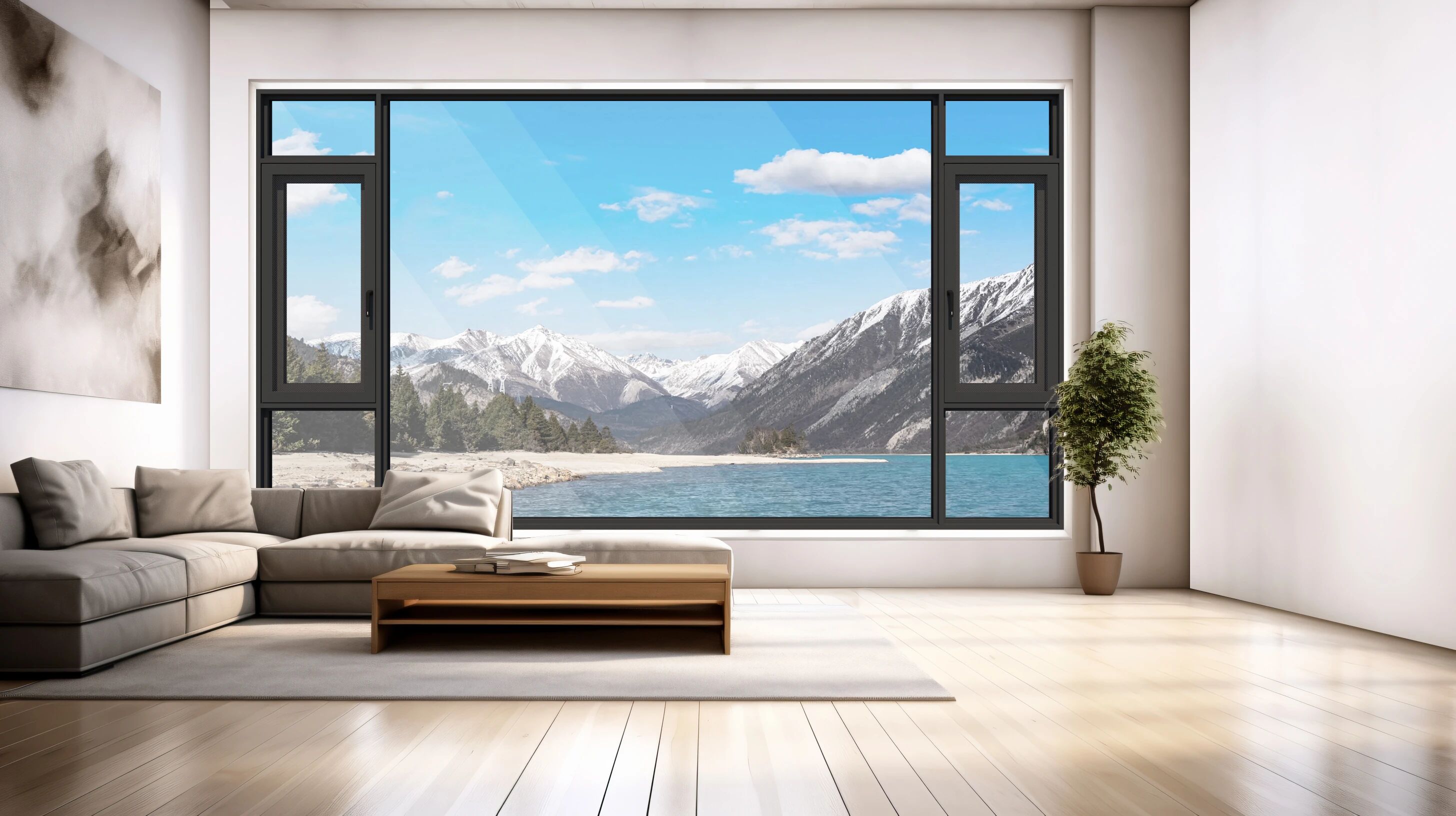 平开窗密封性和抗风压性能都不错,选择中间大玻璃+小窗户的设计,既能够最大化的视线全景视野,又有足够的空间通风,封阳台以后,不用担心光照和通风,视野通透,可以将室外的景色尽收眼底。