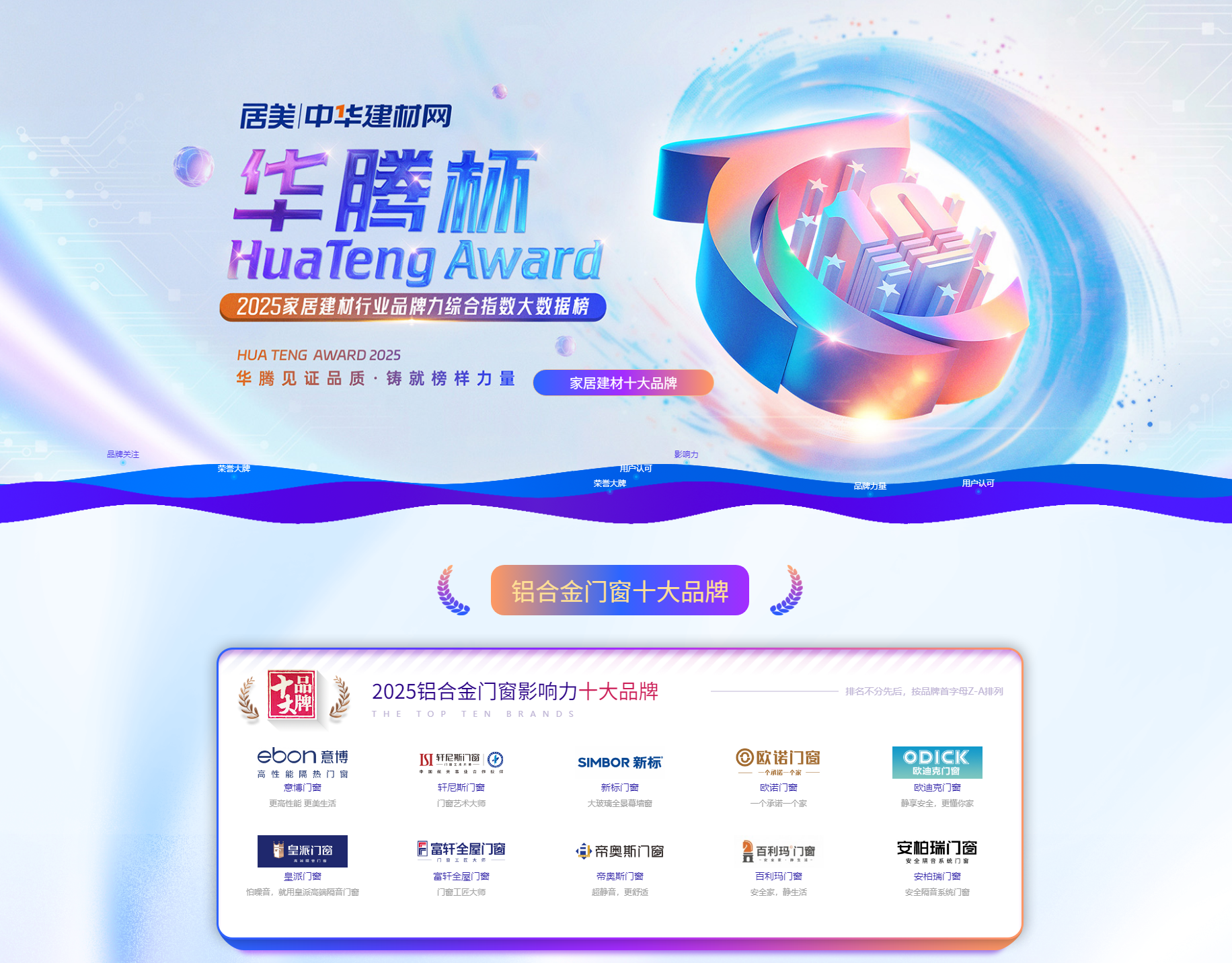 2025年华腾杯门窗十大品牌上榜的有:百利玛门窗、意博门窗、轩尼斯门窗、新标门窗、欧诺门窗、欧迪克门窗、皇派门窗、富轩全屋门窗、帝奥斯门窗、安柏瑞门窗等,排名不分先后。